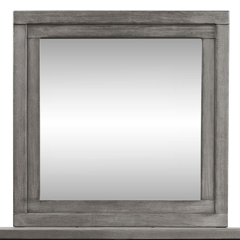 Liberty Furniture Modern Farmhouse Mirror in Dusty Charcoal 406-BR51. Farmhouse has become a movement for today’s generation- a movement that is less about the farm and more about the home and the furnishings in it. Inviting and inspirational, the farmhouse look is a design style that works for cottage or contemporary and is more about creating a look that we love. The Modern Farmhouse Bedroom Collection by Liberty Furniture features simple clean lines that will create a timeless style, giving you the ability to mix new and older pieces together with a layering effect. A neutral palette of finishes mixed with organic new materials gives a textural element to the Modern Farmhouse collection.