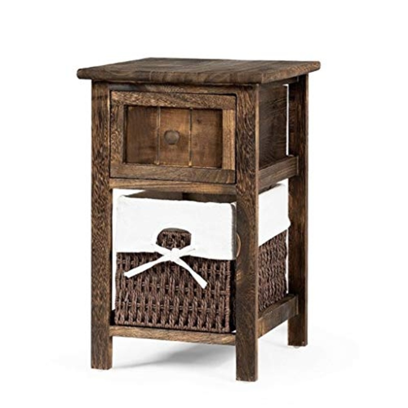 LICHUAN Tavolino comodino mini 2 strati 1 cassetto in legno comodino con cestino per la spesa MDF e solido Paulownia comodino facile da montare