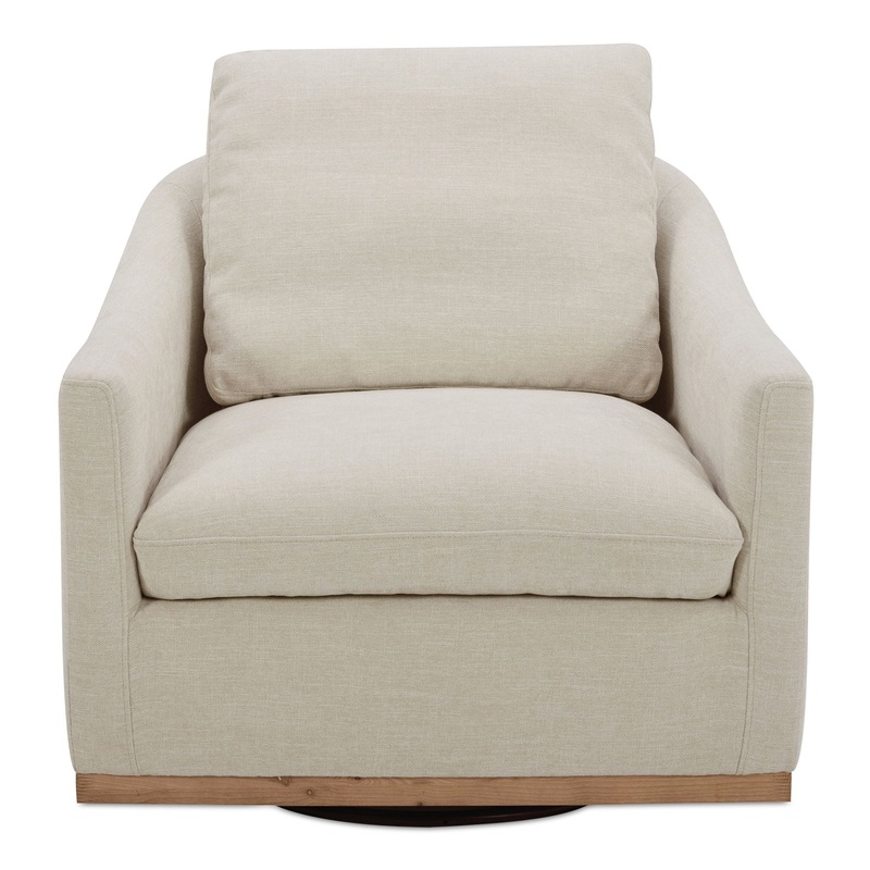 The Linden swivel chair features a curved barrel back paired with a generously sized toss cushion support. A smooth, solid wood base completes the look with a 360 swivel function for an updated, sophisticated feel.Product Features100% Polyester upholsteryF