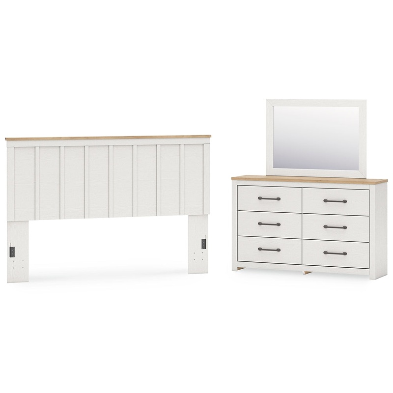 Linnocreek King Panel Headboard with Mirrored Dresser