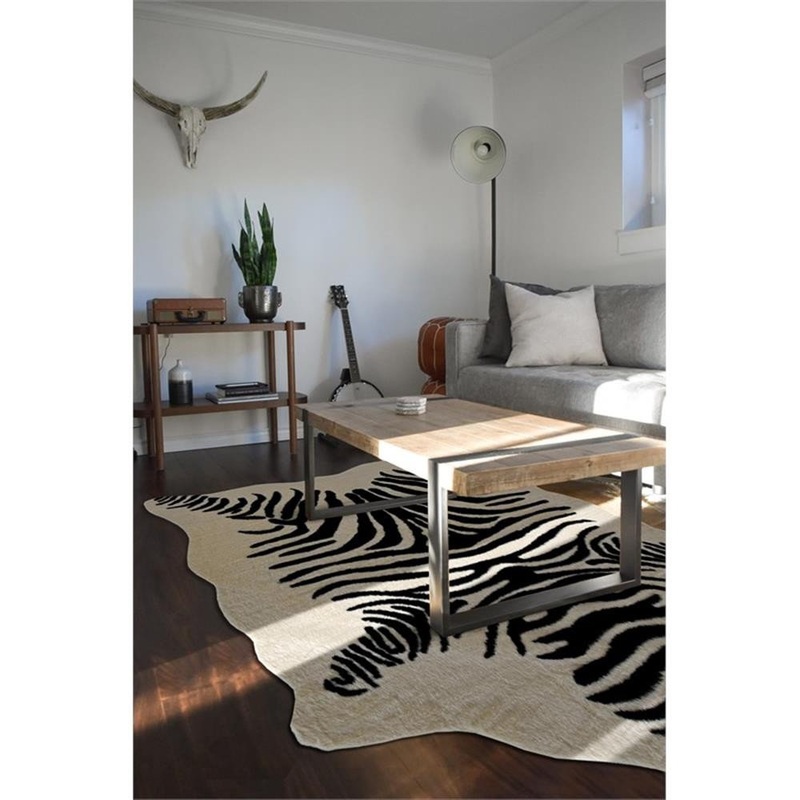 Linon Faux Hide Polyester Ex Brindle Cowhide Area Rug in Brown, Zebra Ivory & Black – Contemporary – Novelty Rugs – by Homesquare