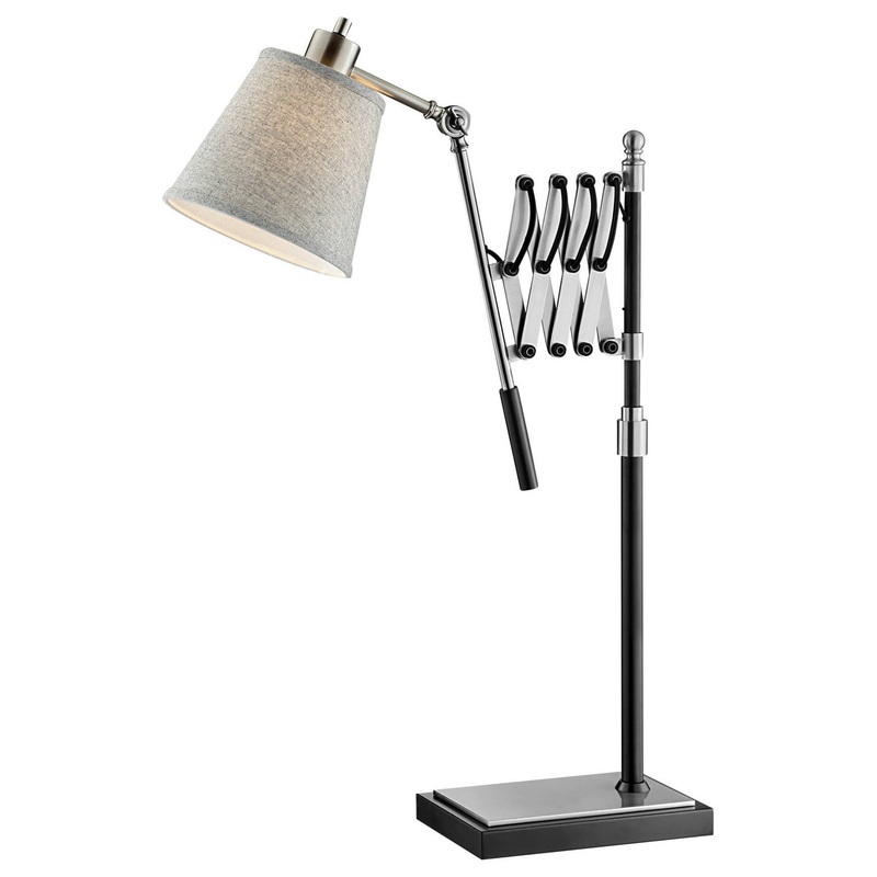 -EXTENDABLE TABLE LAMP, BN/BLACK/L.GREY FABRIC SHADE, A 40W