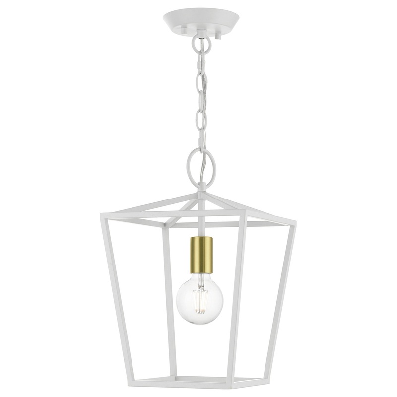 Livex Lighting White 1-Light Square Lantern – Transitional – Pendant Lighting – by LIGHTING JUNGLE