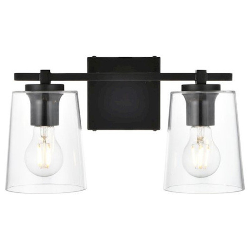 Living District Kacey 2 Light Bath Sconce, Black/Clear – LD7310W14BLK – Transitional – Bathroom Vanity Lighting – by Buildcom