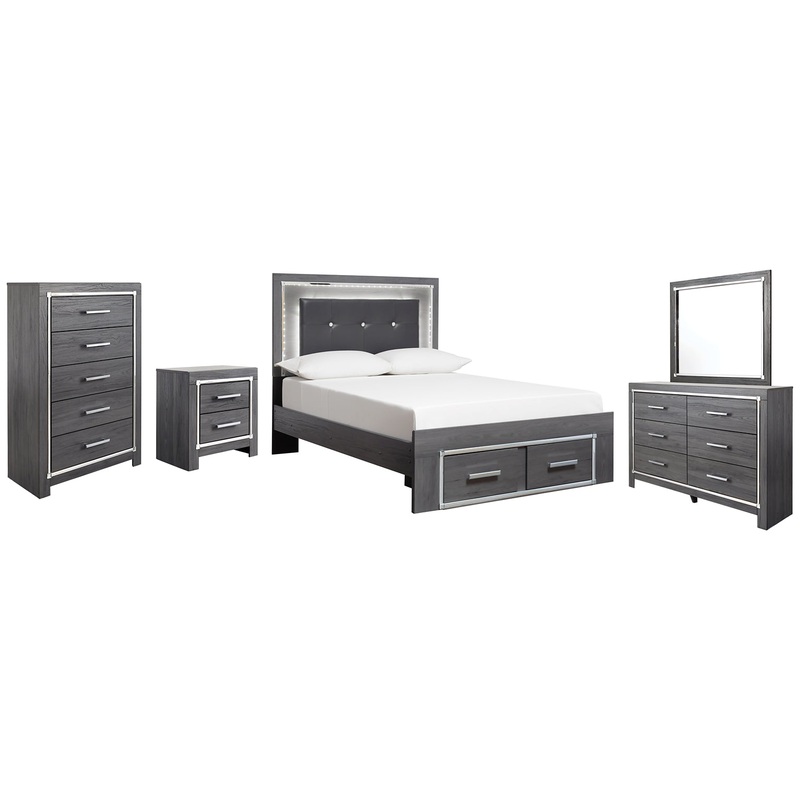 Lodanna Full Panel Bed with 2 Storage Drawers with Mirrored Dresser, Chest and Nightstand