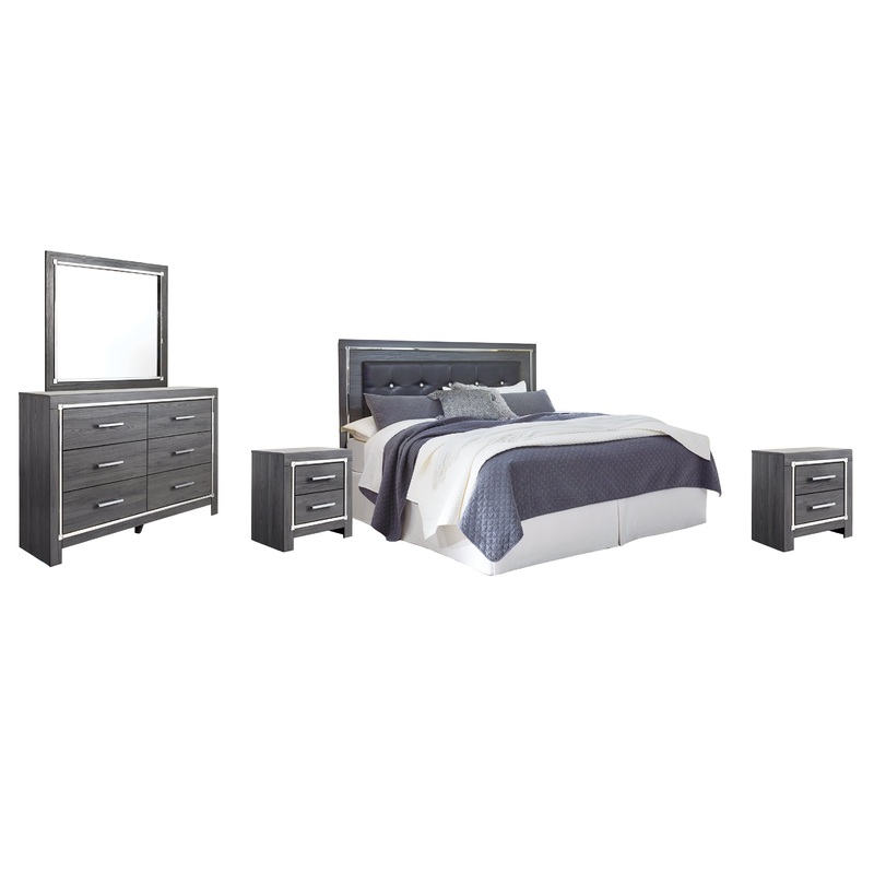 Lodanna King/California King Upholstered Panel Headboard Bed with Mirrored Dresser and 2 Nightstands