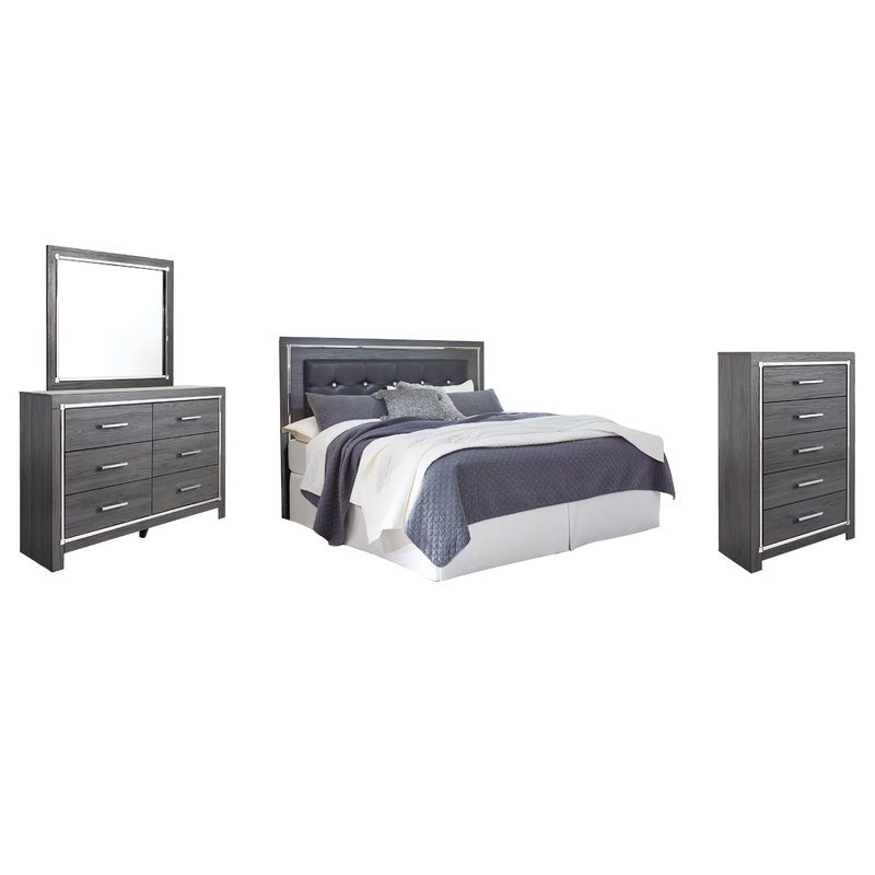 Lodanna King/California King Upholstered Panel Headboard with Mirrored Dresser and Chest