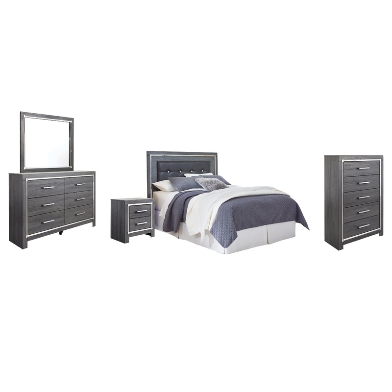 Lodanna Queen/Full Upholstered Panel Headboard with Mirrored Dresser, Chest and Nightstand