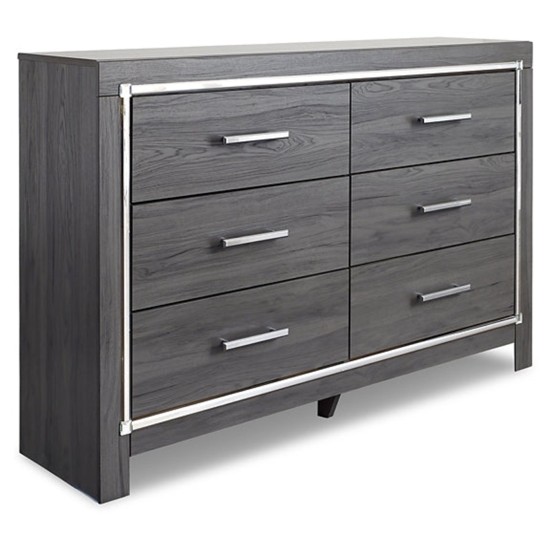Reminiscent of Hollywood glamour of yesteryear, this dresser interprets luxury in a decidedly modern way. A dazzling gray finish and faceted chrome-tone accents enhance the star power. Six smooth-gliding drawers provide enough storage to appease your inner