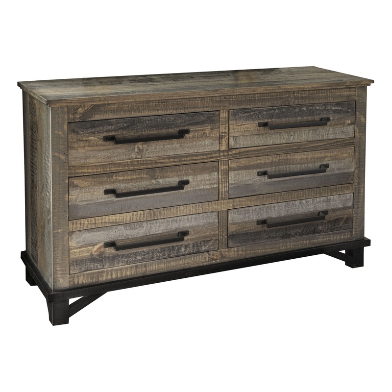 6 Drawer Dresser. The Loft Brown Collection is constructed using pine wood that has been hand-stained and distressed, complemented by hand-forged iron hardware. This beautiful collection features a wide range of high and low finish colors, making it a striking addition to any room dcor you choose to design.