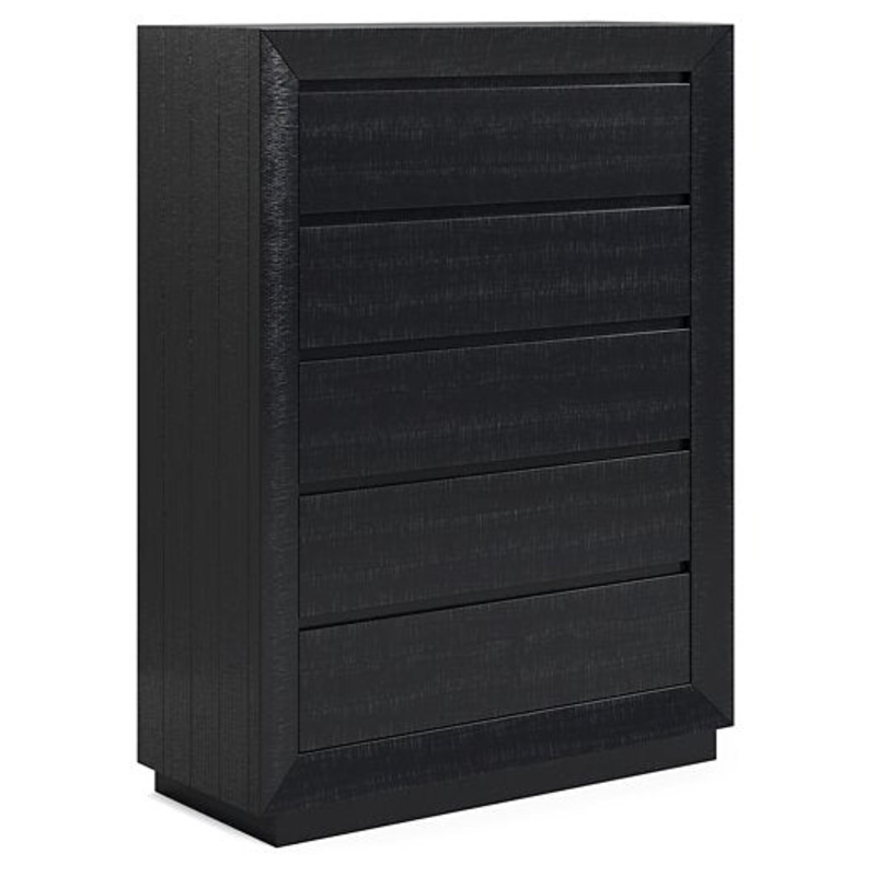 • 5 drawers with fully finished interiors, dovetail construction and ball-bearing side glides (top drawers with felt-lined bottoms)