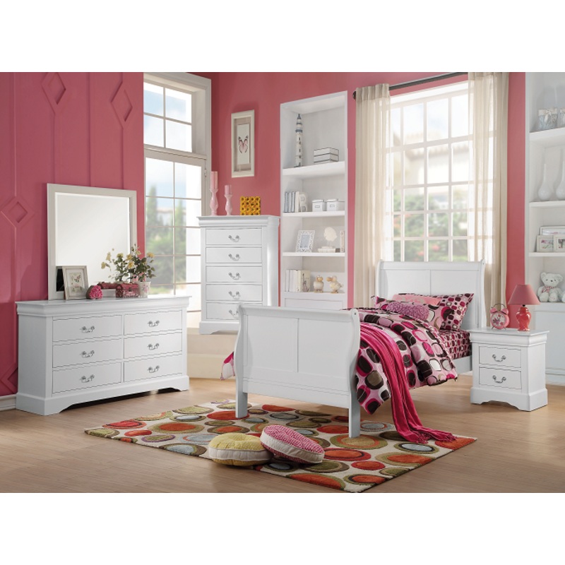 ACME Louis Philippe III Full Bed, White (1Set/2Ctn), 85" x 56" x 47"H, 63lbs. The Louis Philippe III collection brings traditional style details from its sleigh beds, featuring KD headboard, and footboard. Crafted with selected wood and veneers is availabl