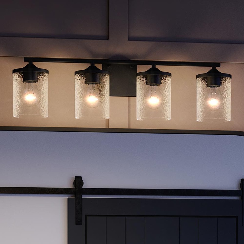 Luxury Modern Farmhouse Bath Fixture, 7.75”H x 28”W, in Matte Black – Transitional – Bathroom Vanity Lighting – by Urban Ambiance