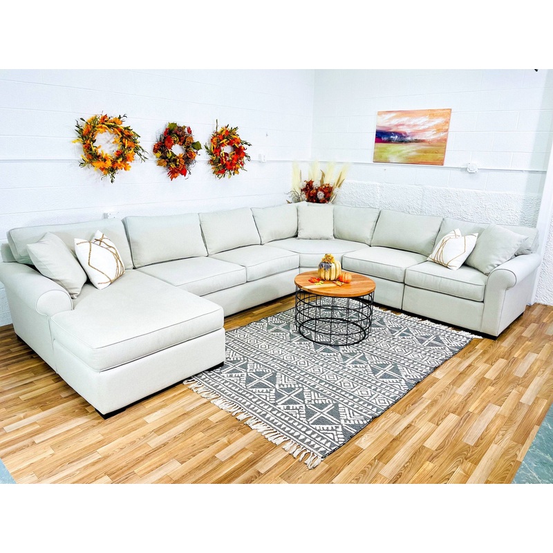 Large Macys 5 piece modular sectional w/left facing chaise.Retail price = $3500Your price = $1,495 Just a few years old, this couch is in excellent condition with no rips, stains or damage and comes from a pet-free, smoke-free home. There is some minor sun fading. All the cushions unzip for washing. It has a left-facing chaise and is super big and comfy. Can be reconfigured to fit different room sizes. It has been professionally cleaned and sanitized to freshen it up for a new home. FREE DELIVERY within 10 miles of Holliston, MA and a small fee beyond that based on distance. COLORLight Beige DETAILSExcellent conditionLeft-facing chaiseSeparated into 4 piecesModularNo stainsNo ripsNo damage (some sun fading)Pet-freeSmoke-freeProfessionally cleaned & sanitizedFull delivery available DIMENSIONSCurrent configuration152 x 11565 D (chaise)38 D (sofa)30 H (w/feet)You can move the pieces to create the optional following configurations115 x 152181 x 86122 x 145 Other Notes:Carpet and white throw pillows not included.Existing couch purchase/removal available. PAYMENT OPTIONSWe accept Cash, Venmo, Cash app, Apple Pay, PayPal, Credit Card, and AcimaFirst come, first serve.10% deposit holds it until delivery.. Be the first to see our new couch listings every week, Join our group,Pull Up A Couch Alerts – New England Couch Dealshttps://www.facebook.com/share/qntBEXKKdWUWkggg/?mibextid=K35XfP