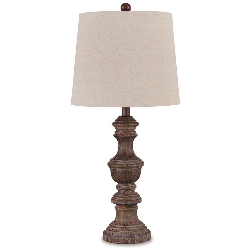 You can never go wrong with the classicsand this lamp is certainly an alluring one. Crafted with a stunning faux wood turned base, the piece takes a page straight from timeless, traditional style.Made of brown faux wood with a modified drum shade3-way swit