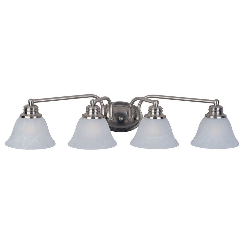 Brighten up your powder room with the classic Malaga Bath Vanity Fixture. This 4-light vanity fixture is beautifully finished in satin nickel with frosted glass shades to match your existing hardware. Whether hung over a pedestal sink or a full vanity, thi