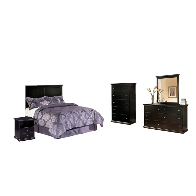 Maribel Full Panel Headboard Bed with Mirrored Dresser, Chest and Nightstand
