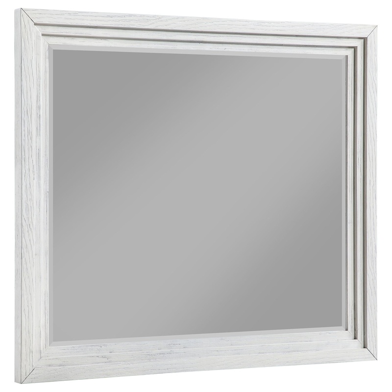 Augment a stylish bedroom setting with a transitional framed dresser mirror. It’s the perfect complement to a relaxed bedroom ensemble, offering reflectivity and brightness while complementing decor. The mirror boasts a decorative frame and beveled glass, adding to its timeless character. The frame is crafted in wood with a tiered trim design that creates a stylish sense of depth. its distressed white finish is soothing and simple, complementing a variety of settings.