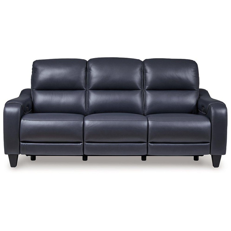 This power reclining sofa puts a sleek twist on laid-back living. It satisfies your desire for comfort without being bulky in design, thanks to subtly incorporated one-touch reclining and adjustable headrests. With chic exposed legs and stunning stitching