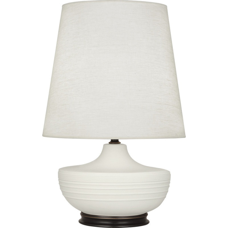 -Matte Lily Glazed Ceramic With Deep Patina Bronze Accents, Oyster Linen Shade -Bulb Type: A -Number of Bulbs:1 -Bulbs Included: N -UL Listed: Yes -Bulb Wattage: 150 -Hardwire or Plug: Plug InModel # (MPN)MLY25Product ID171799003Manufactured ByRobert Abbey