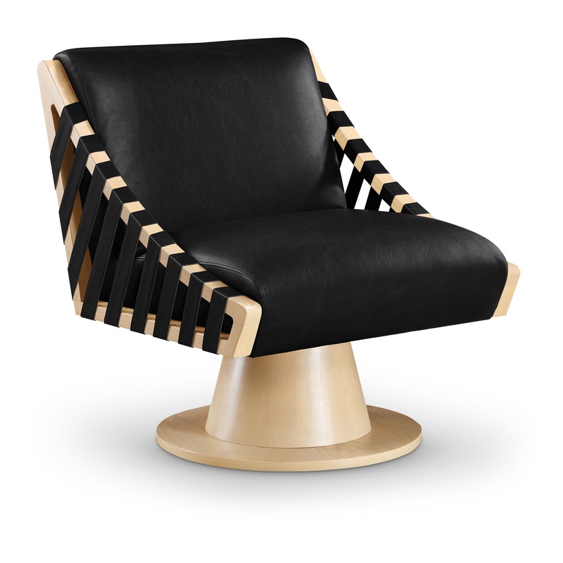 Millwin – Swivel Accent Chair With Natural Base – Black
