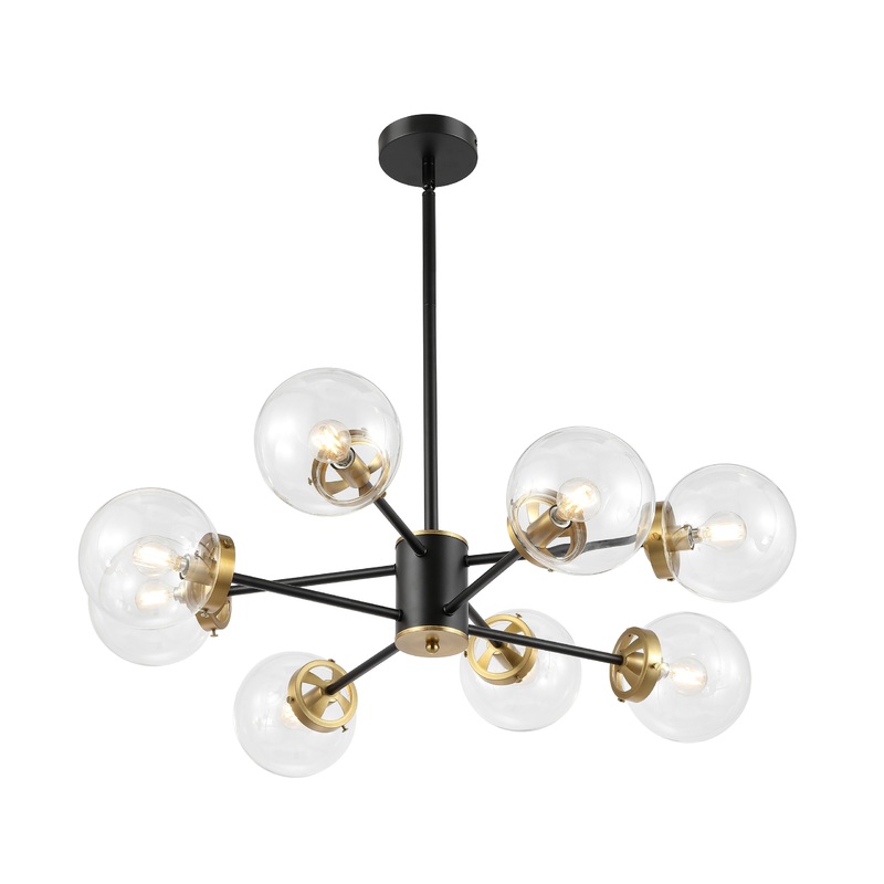 Defined by its distinctive sputnik design, this 8-light chandelier brings a splash of sophistication to your room of any style whether it is modern, retro, industrial, or rural. This statement piece features an elegant combination of linear metal rods and opal/clear glass shades that take on a globe silhouette. Its satin brass finish allows it to blend in with a variety of color palettes while the adjustable hanging rods let you tweak its height to fit your space. This classic light fixture is perfect for your living room, dining room, bedroom, or kitchen.