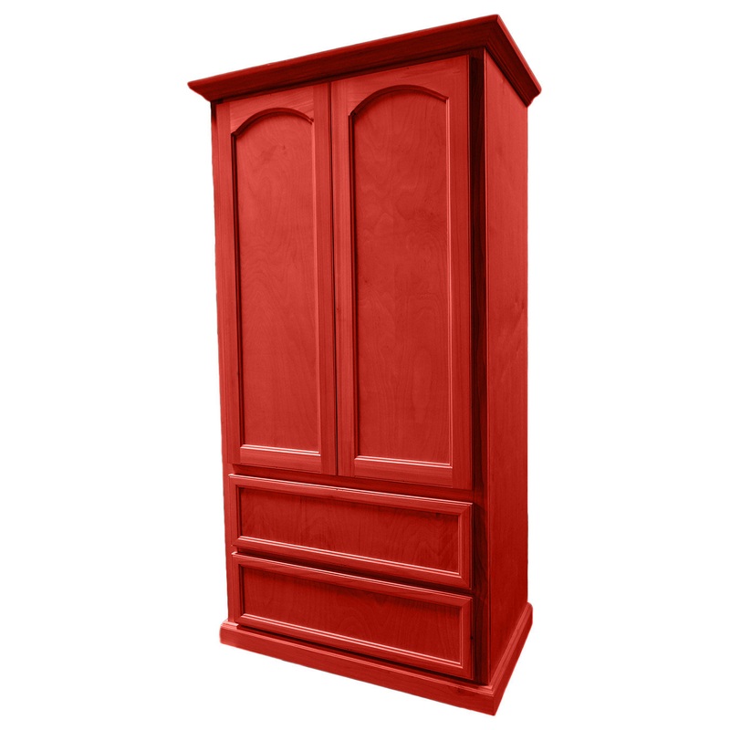 -Please view secondary photo for color option being selected -Please be advised Natural Wood variation can cause color variation -Solid Wood -Multiple color options -2 Arched Doors -1 clothing rod -2 Adjustable Shelves -2 Drawers (Ball bearing Slide Guides