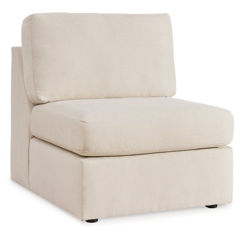 This armless chair is made with Next-Gen Nuvella (polyester) fade-resistant, washable fabric. Fully finished on all sides, it pairs with other items in the series to make a modular sectional.