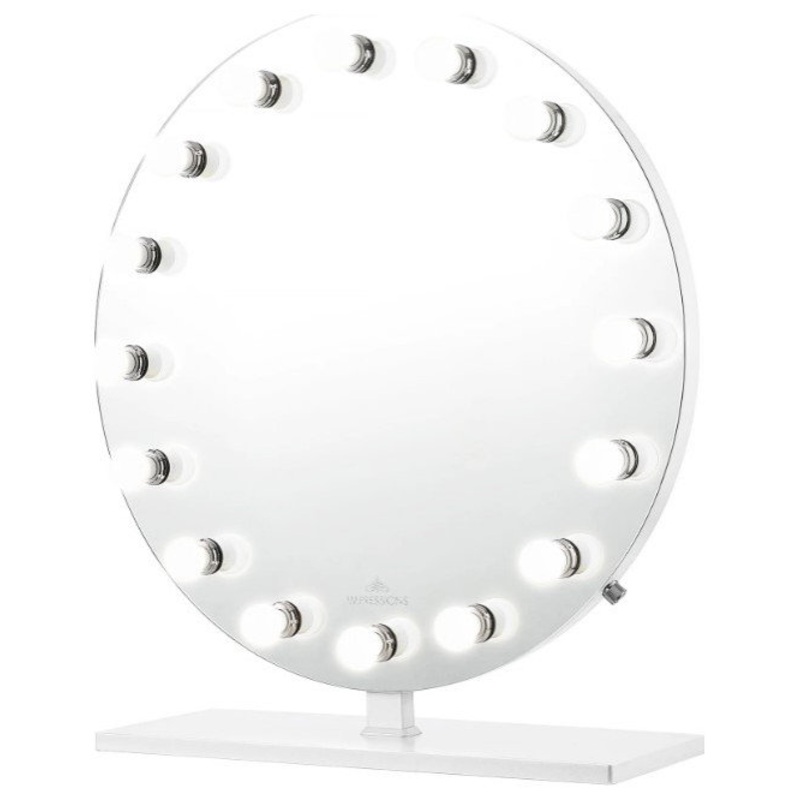 Impressions Vanity presents Monarch Plus Hollywood mirror, Our uniquely styled makeup mirror for the vanity that lets you look your best. Create a luxurious ambiance in your glam room with this LED mirror for makeup. This smart desk mirror has a ring of bright LED bulbs around it which provides you with even lighting to illuminate your entire face. You can dimmer this lighted makeup mirror simply by swiveling its built in knob. This Hollywood vanity mirror with lights lends a glamorous yet modern look to any room with ultra bright studio quality lighting. Add charms to your glam room with mood enhancing effects of the most luxurious mirror yet. The likes of which you have seen used by the industrys top influencers and celebrities.