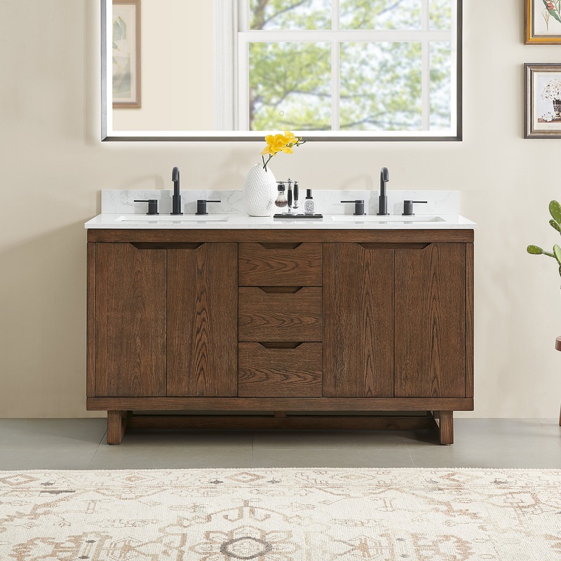 Mowry Bathroom Vanity, Brown Brushed Oak, 60″ – Transitional – Bathroom Vanities And Sink Consoles – by Altair-573060-BK-GW-NM