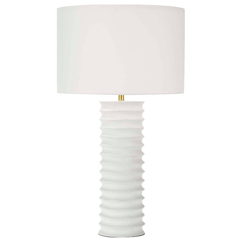 A tactile white finish on the Nabu metal column table lamp accentuates its accordion-like base. Its simple, yet artisan feel would make for a beautiful welcome in an entryway or in a pair as bedside lighting.