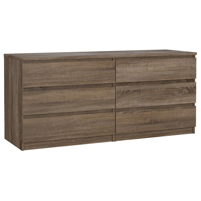 With ample storage space in its 6 roomy drawers the Scottsdale double dresser is an easy way to keep your belongings organized. From delicates to bulky items the Scottsdale 6 drawer double dresser can store various items while offering a modern, sleek look that merges seamlessly with any decor. With metal drawer glides and maple drawer interiors for smooth movement the chest is a sturdy, yet simply designed piece. The finish is easy to clean, water, scratch, and stain resistant making it an ideal choice for families or college Living.