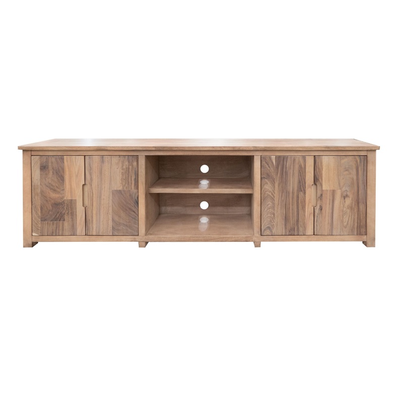 4 Door TV Stand 88". The Natural Parota collection exudes sophistication and timeless elegance, effortlessly enhancing the aesthetic of any room. Its striking presence is guaranteed to leave a lasting impression.Product FeaturesTops are crafted from parota