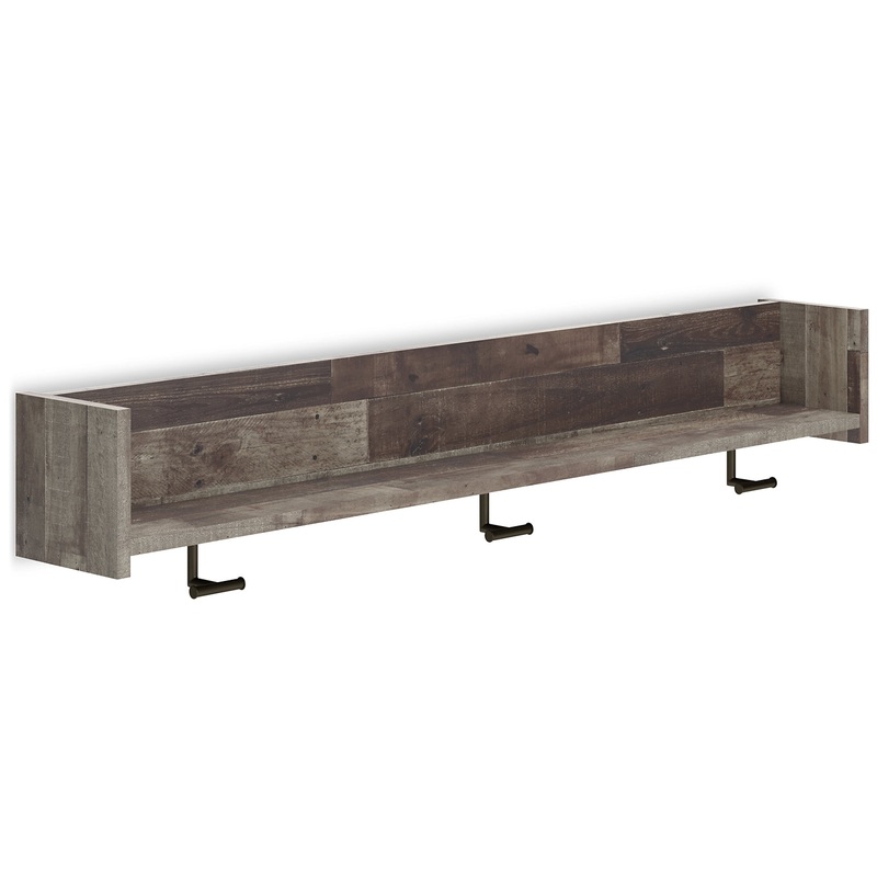 The sleek, minimalist look of this wall-mounted coat rack is fashionably contemporary and easy to integrate in a variety of living spaces. Three sturdy hooks and a spacious shelf are your new go-to spot for hats and scarves or displays. Whether by the front door or back entry, this coat rack keeps all-weather essentials well within reach.