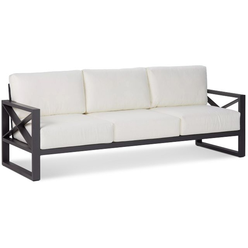 Model: 9720642Dimensions: 34.50w x 36.00h x 34.00lBack height: 10.5All features: removable cover rust resistant uv resistant water resistant weather resistantBack cushion thickness: 5.5Seat cushion core material: foamLeg material: aluminumType of back cush