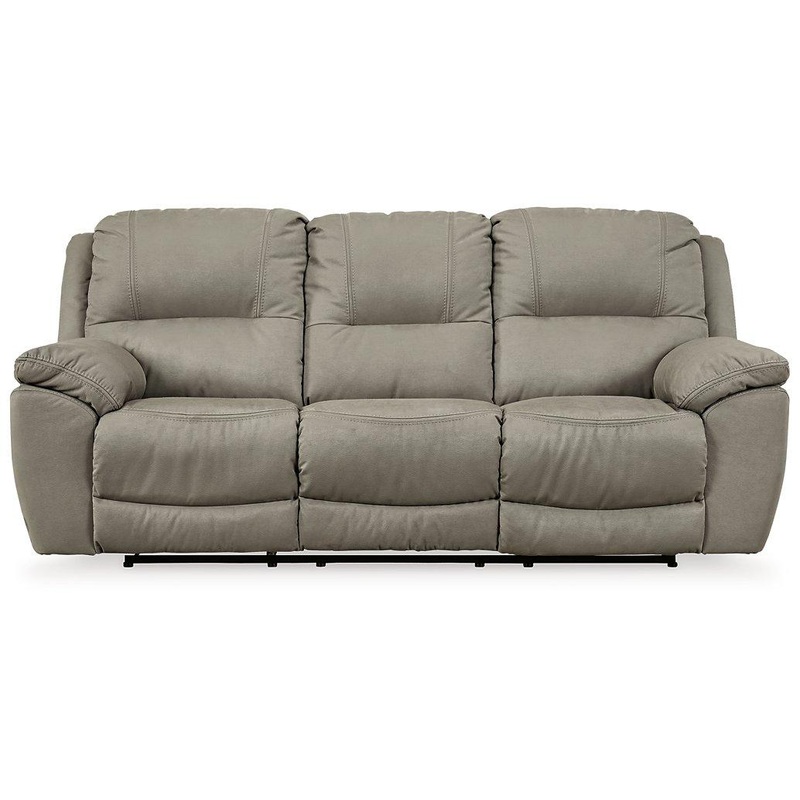 Kick back, relax, and enjoy some sports on TV with this power reclining sofa. You will love its double stuffed pillow top arms and soft-as-suede faux leather upholstery. The family-friendly dark gray color and creative stitching add panache. Recline in inf