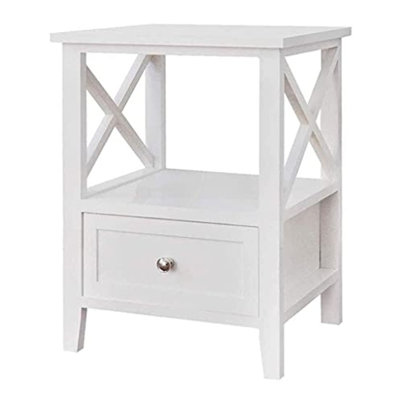 NL Comodini Camera da Letto Cabinetto da Comodino in Legno massello con cassettiera e scaffale, Bianco