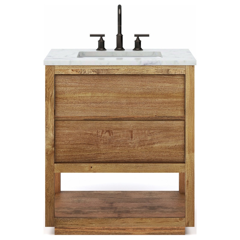 Oakman Marble Top Vanity in Mango Wood with Faucet, 30 – Transitional – Bathroom Vanities And Sink Consoles – by Water Creation