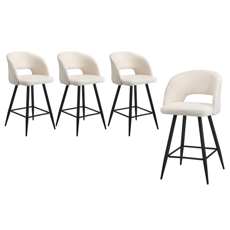 Oikiture 4x Bar Stools Kitchen Dining Chair Boucle White SURA