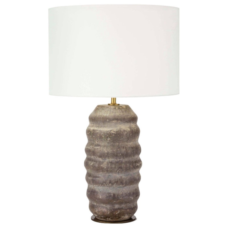 The Ola has been expertly crafted by artisan hands to achieve the natural, organic look of true earthenware. Finished with a hand-applied, matte glaze that produces various shades of earthen brown and tan. The coloring and distressing is further enhanced by the natural, repeating curves that make up the lamp’s body. Finished with an aged brass metal disc at the base and drum shade in natural linen at the top, the Ola is the perfect lamp to add to a space that welcomes the imperfect beauty of nature.