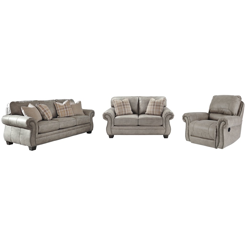 Seamlessly merging classic elements with modern trends, this sofa, loveseat, and recliner invite you to bring home the best of then and now. Wrapped in a fabulous steel gray upholstery with sumptuous suede-like feel, this easy-elegant sofa is dressed to im