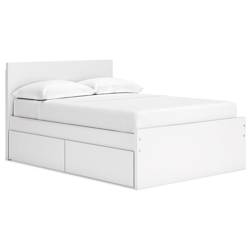 Create the modern bedroom of your dreams. This full panel platform bed offers a minimal design with maximum style, combining ultra-clean lines and an easy-elegant solid white finish with a hardware-less aesthetic. Spacious storage drawers with ball-bearing