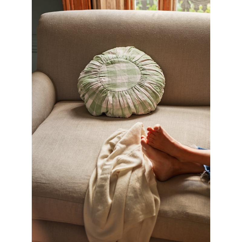 – A charmingly plump and round cushion in a gingham print