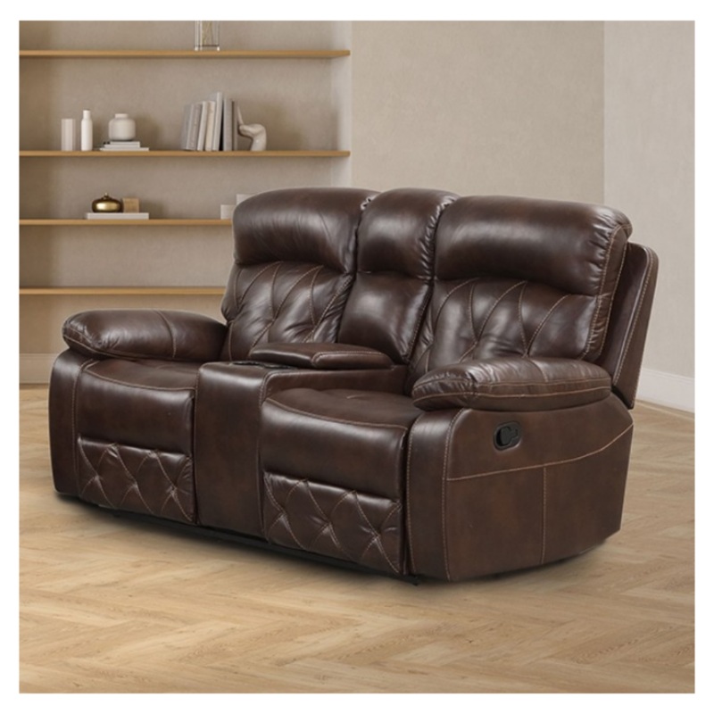 Wrapped in a rich, warm brown leatherette, the Osias Loveseat provides the luxurious appearance and soft touch of genuine leather, coupled with exceptional durability and effortless maintenance for daily enjoyment. Its unique character is prominently displayed through the exquisite diamond stitching on the footrests and seat, adding a bespoke texture and a touch of refined artistry that enhances its overall elegance.