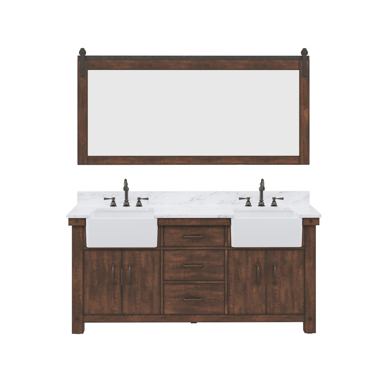 Ready yourself for a brand-new day in the versatility with barn style of the Paisley vanity collection. Inspired by nature, stellar color selection which includes grizzle gray or rustic sienna will satisfy your unique stylishness. Incorporated with superior craftsmanship, the X-Panels on both sides of the vanity are the epitome of modern farmhouse schemes. Its eye-catching style along with rustic aesthetic includes a spacious cabinet blended with antique wrought iron handles. The expertly crafted soft-closing drawers offer plenty of storage space for your bathroom essentials. Large ceramic apron sink bowl in snow white catches the center of attention, seamlessly complementing the soft glow of the vanity along with the Carrara White marble countertop. Paisley vanity collection is an excellent choice that combines the elegance of the past with a design that meets today’s needs.