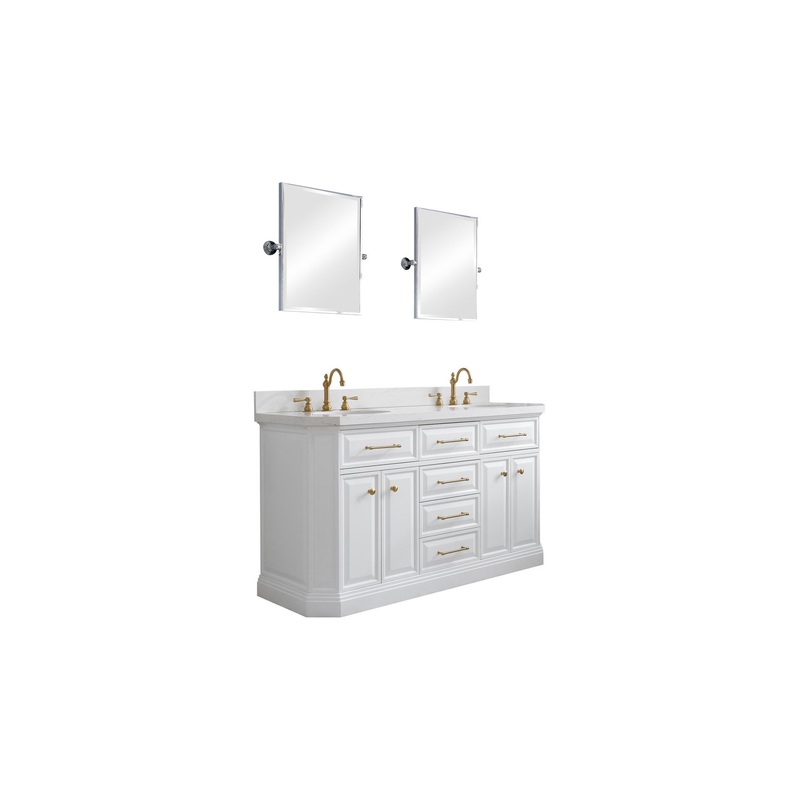 Palace 60″ Double Sink White Quartz Countertop With Mirror – Transitional – Bathroom Vanities And Sink Consoles – by Water Creation