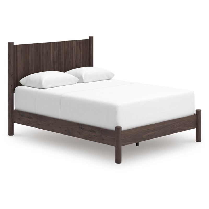 Crafted with both form and function in mind, this queen panel bed brings a dash of retro-cool character to your modern boho aesthetic. Its reeded headboard adds an on-trend touch to the classic silhouette. Warmly welcoming with a rich brown finish, the bed