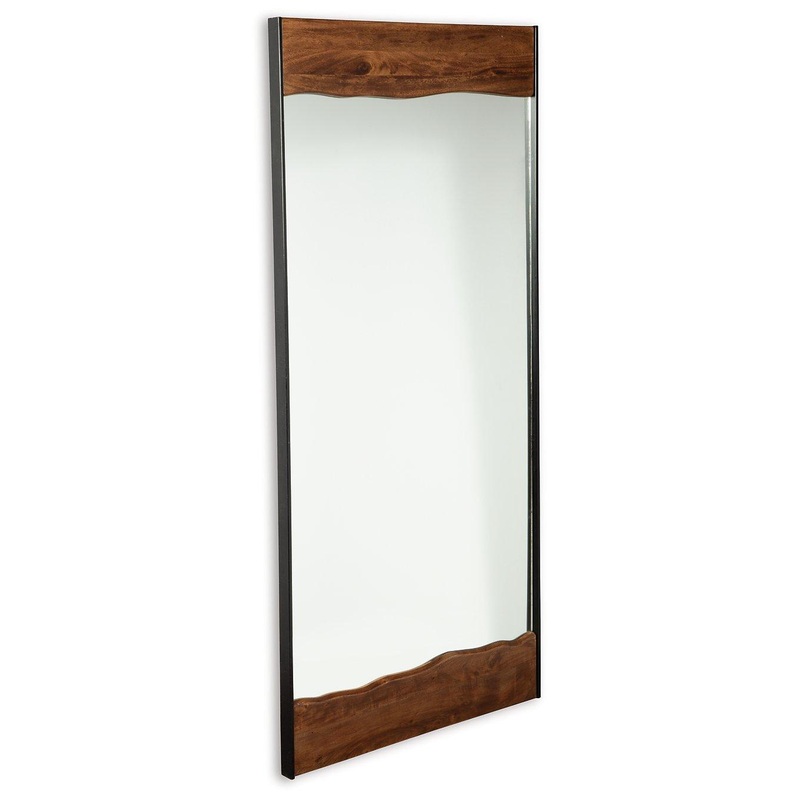 Simply striking and strikingly simple. The ultra clean lines and a mixed-media frame of brown finished wood and black finished metal make this floor mirror a complementary choice for so many spaces. More About This Product Product DetailsWood, mirrored gla