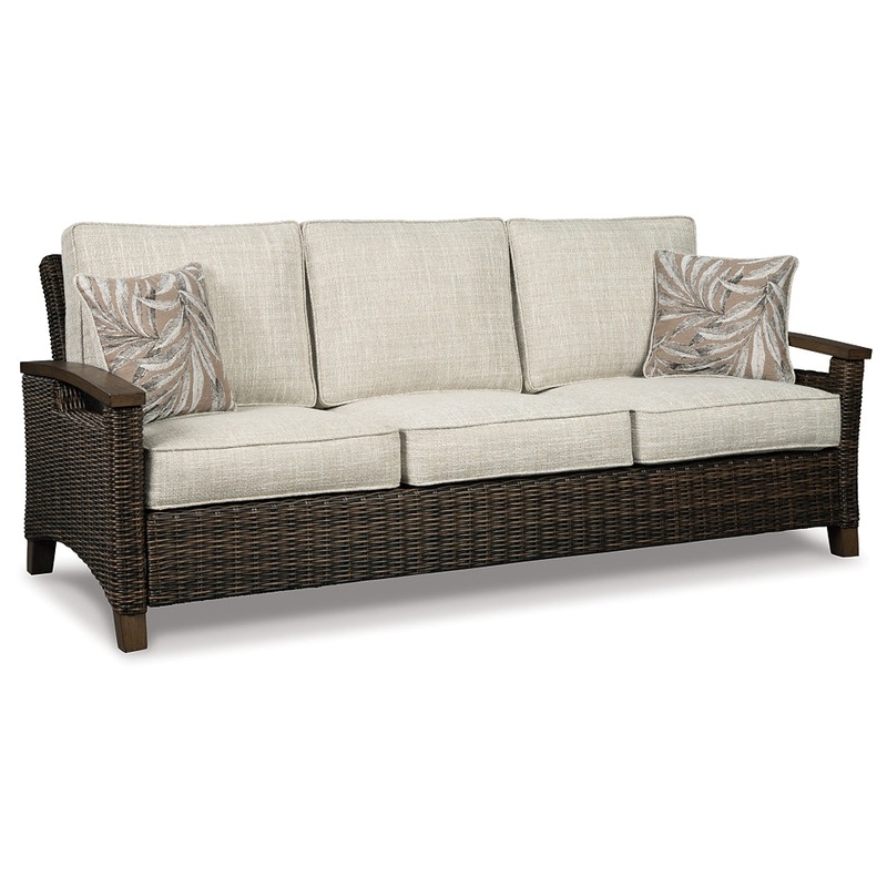 Pretty enough for trendy interiors, yet durable enough to weather the elements, the Paradise Trail outdoor sofa rises to the challenge beautifully. Handwoven resin wicker over rust-proof aluminum merges high style with low maintenance. Rest assured, though the exposed armrests and feet look remarkably like wood, their sturdy aluminum construction is perfectly suited for alfresco living. Plush seat cushions and throw pillows wrapped in high-performing Nuvella fabric aim to please.