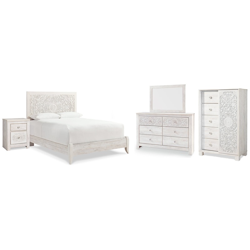 Paxberry Queen Panel Bed with Mirrored Dresser, Chest and Nightstand